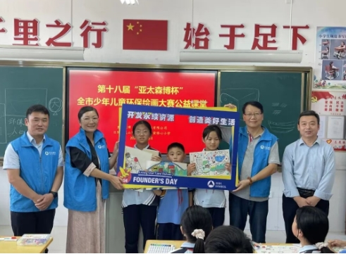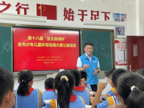 此前的9月18日,該團(tuán)隊(duì)曾到五蓮縣松柏鎮(zhèn)中心學(xué)校開(kāi)展第十八屆“亞太森博杯”全市少年兒童環(huán)保繪畫(huà)大賽啟動(dòng)儀式。
