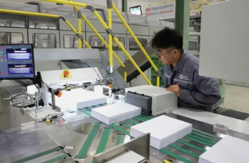記者 楊陽:這里是亞太森博年產(chǎn)50萬噸高檔文化紙生產(chǎn)線,去年實現(xiàn)了全線達產(chǎn)。在中國市場上,每3張高端復(fù)印紙里就有一張是亞太森博生產(chǎn)的。除了國內(nèi)市場,這里的產(chǎn)品已經(jīng)打開了東亞及中東市場。 100多米的生產(chǎn)線上,54臺烘缸組成10組,每臺烘缸重達16.8噸,長度超過11米,這是針對亞太森博鮮漿造紙?zhí)攸c而專門客制化生產(chǎn)的紙機。在這條生產(chǎn)線上,鮮木漿就地“變紙”,成為終端產(chǎn)品,這也成為亞太森博由“漿”向“紙”延鏈、補鏈、強鏈的重要里程碑。
